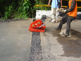 Proses ini diulangi untuk ketebalan selanjutnya, sampai elevasi yang ditentukan. Setelah penghamparan agregat selesai selanjutnya dipadatkan dengan menggunakan alat compector sampai agregat saling mengunci dan padat.