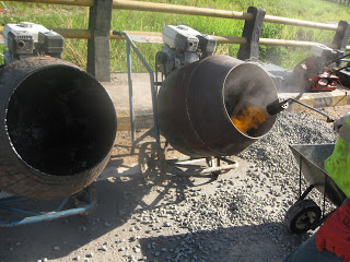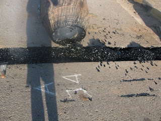 Agregat sebelum digelar harus dipanaskan terlebh dahulu sampai suhu 200 derajat dengan alat pemanas tertentu (indirect heating) dimana suhu dapat terkontrol dengan baik dan dapat menghasilkan panas yang merata pada seluruh agregat. Penghamparan lapis pertama setebal 40 mm yang kemudian dicor dengan aspal karet yang sudah dipanaskan dengan cara indirect heating sampai suhu 200 derajat agar aspal karet tersebut dapat berpenetrasi kedalam semua rongga antar agregat.